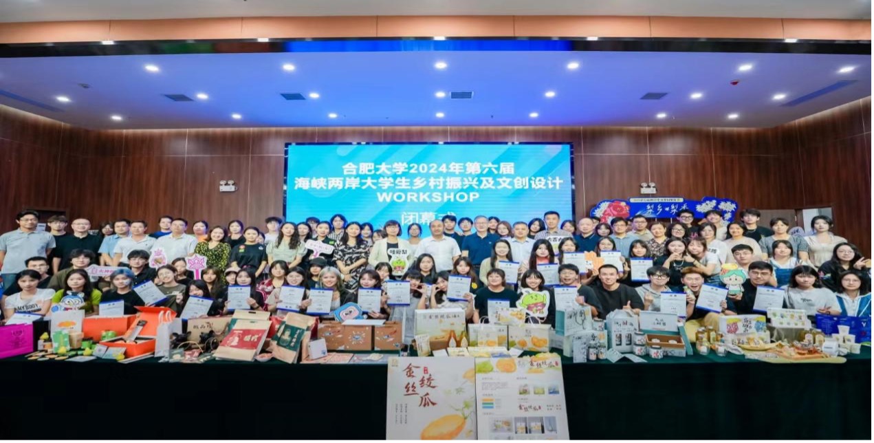 7月12日下午,合肥大學2024年第六屆海峽兩岸大學生鄉村振興及文創設計WORKSHOP活動閉幕式在設計學院報告廳隆重舉行。安徽省教育廳姚德勇處長、皖臺交流協會繆劍秘書長、銘傳大學方菁容副教授與馮承芝副教授、王其東書記及相關部門負責人和項目組全體師生80余人參加了閉幕式。