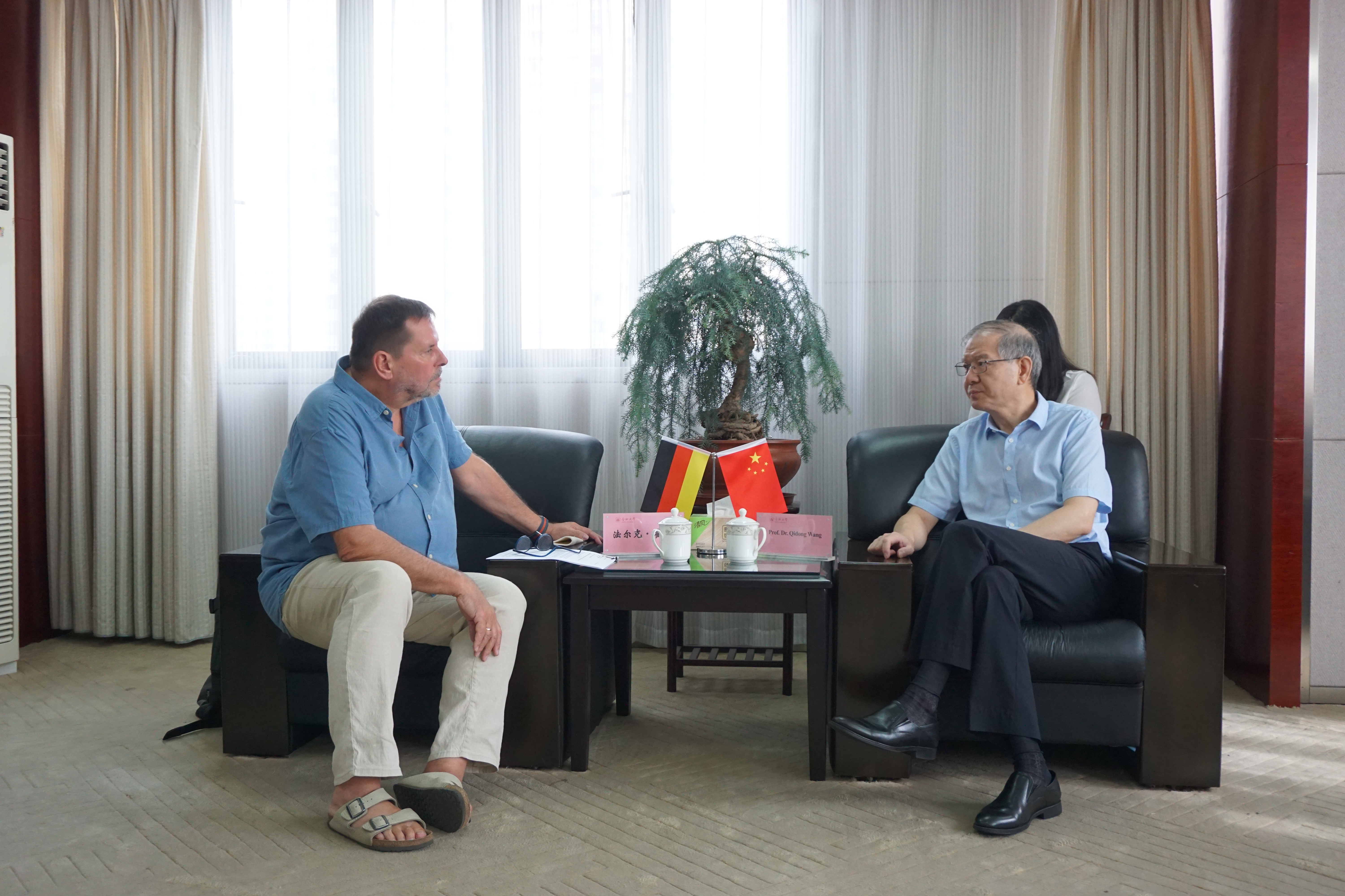 王其東首先對來校工作與訪問的兩位教授及家屬表示熱烈歡迎,簡要介紹學校在大學更名后的各項事業(yè)發(fā)展,期待在未來發(fā)展中繼續(xù)得到兩位教授的支持,把施特拉爾松德孔子學院與中外合作辦學專業(yè)兩個中德教育合作品牌做大做強。
