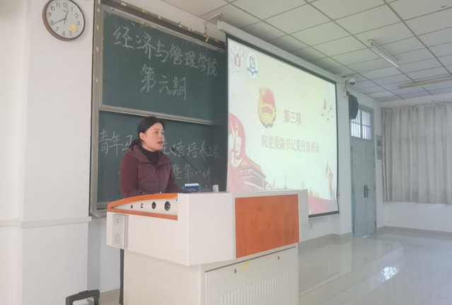 11月26日中午,合肥大學(xué)經(jīng)濟(jì)與管理學(xué)院第六期青年馬克思主義者培養(yǎng)工程開(kāi)班典禮暨第一講于一期五棟101教室舉行。經(jīng)管學(xué)院黨委副書(shū)記夏丹青出席并發(fā)表講話,院團(tuán)委老師程越岳、第一屆團(tuán)委學(xué)生會(huì)成員及24級(jí)新生班干參加學(xué)習(xí),第一講由學(xué)院團(tuán)委學(xué)生兼職副書(shū)記張敬磊同學(xué)主持。