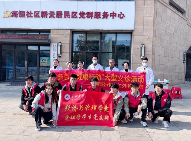 2024年11月12日,合肥大學金融學學生黨支部黨員與第十一期入黨積極分子前往海恒社區耕耘居民區開展社區“義診”志愿服務活動。