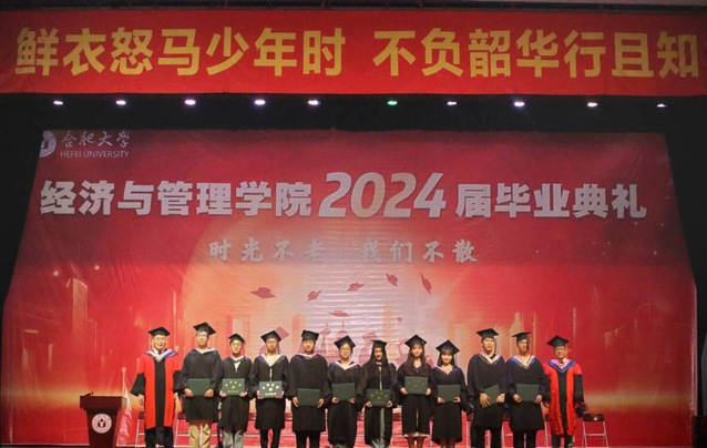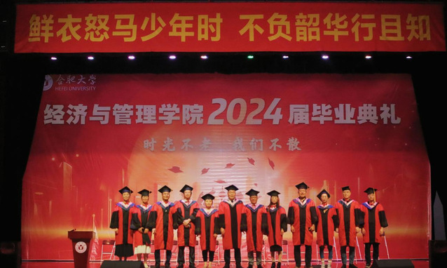 7月3日,經濟與管理學院2024屆畢業生畢業典禮暨學位授予儀式在致用禮堂舉行。經濟與管理學院黨委書記倪澤強、院長陳江華、黨委副書記夏丹青、副院長于娜以及學位評定委員會的老師們共同為2024屆畢業生送上最真摯的祝福。