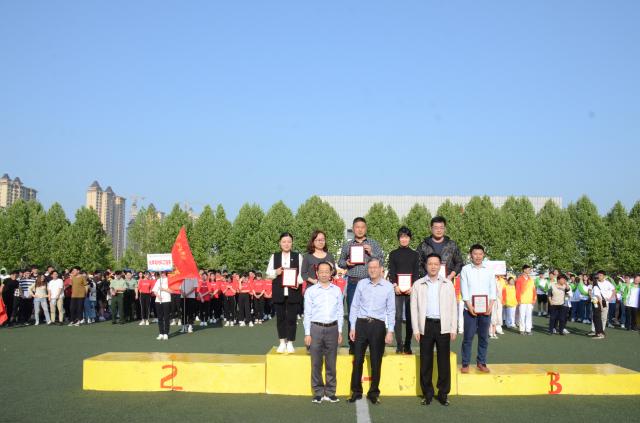 閉幕式中,合肥學院副校長劉建中公布了本屆體育節暨田徑運動會的競賽成績,管理系榮獲體育節團體第一名和田徑運動會團體第三名。管理系黨總支副書記張永軍代表管理系上臺領獎并與頒獎嘉賓合影留念。