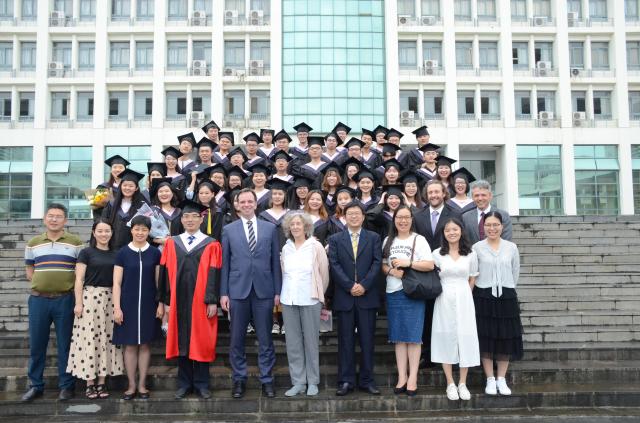 最后,楊學春教授和舒勒教授為畢業生代表頒發中方畢業證書和中德雙方學士學位證書并合影留戀。至此,2015級中德合作物流管理專業畢業典禮圓滿結束。