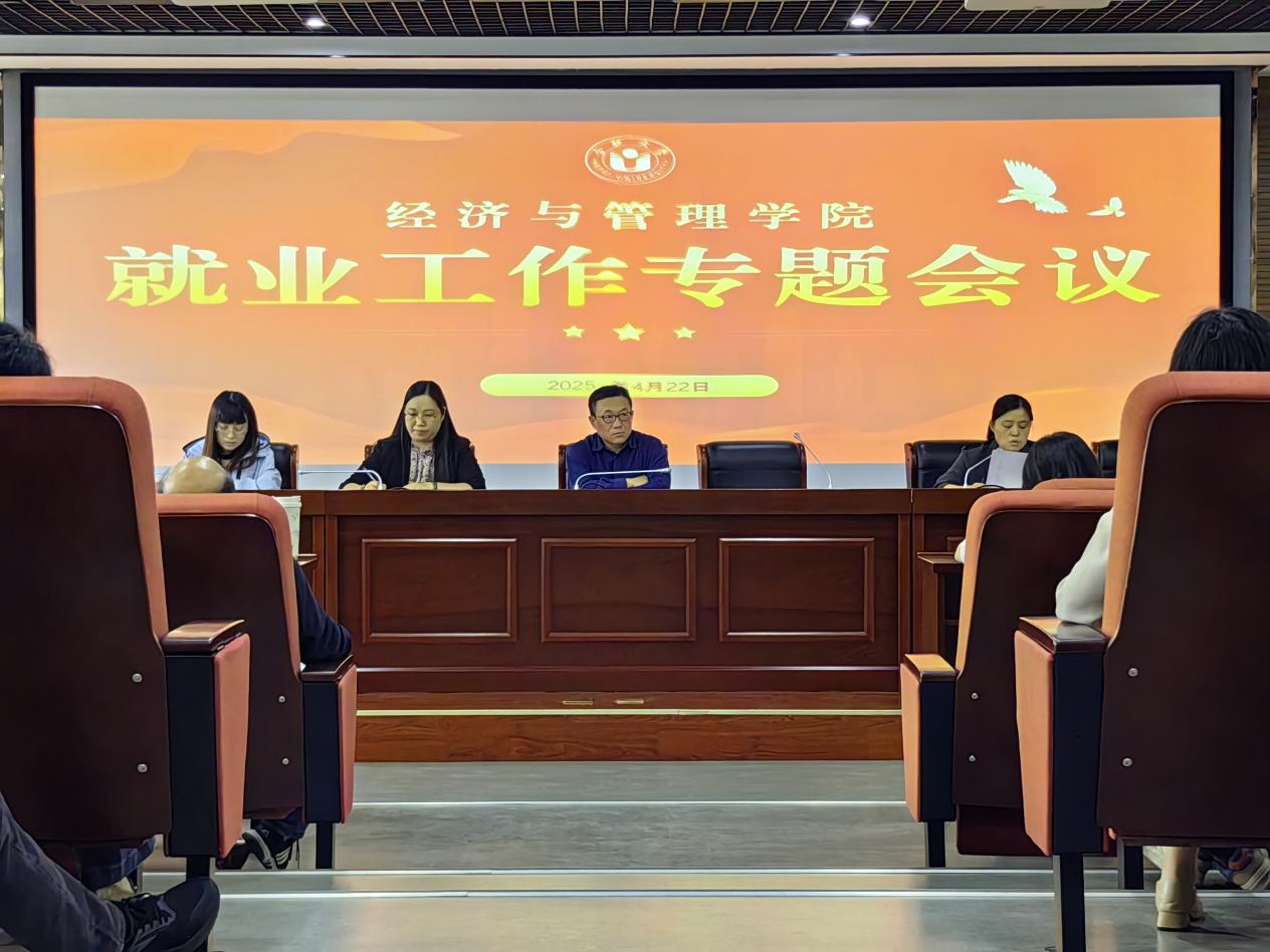 為進一步落實學校關于畢業生就業工作的部署要求,凝聚全員促就業合力,推動2025屆畢業生高質量就業,4月22日下午,經濟與管理學院在學院報告廳召開全院教師就業工作推進會。會議由學院黨委書記倪澤強主持,學院領導班子、各系主任及全體教職工參加。
