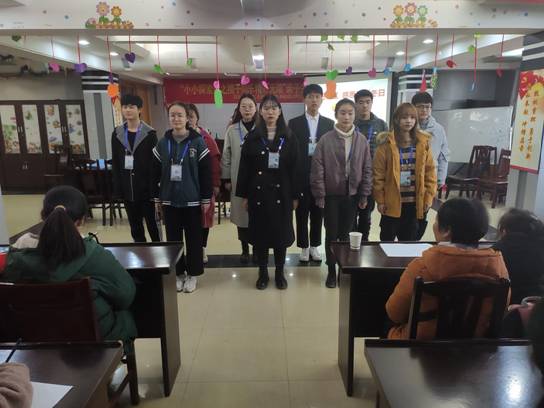下午兩點,志愿者們到我校一區博學樓C座308室集合,隨后一同前往海恒社區。到達目的地,志愿者們便開始布置場地,裝飾教室,并安排家長和小朋友們入座,給小朋友們分發糖果。