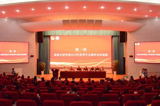 此次表彰大會在合肥學院2019年度青年志愿者活動視頻中拉開了序幕。大會伊始,全體參會人員起立進行了鏗鏘有力的志愿者宣誓。隨后,由會議主持人校團委書記杜娟對2019年度合肥學院青年志愿者工作開展情況進行了簡要匯報,同時她也對2019年度我校青年志愿者活動的收獲和成就做了總結。接著,由參會領導宣讀2019年度優秀指導老師、青年志愿者優秀個人、優秀組織及優秀項目獎評選表彰名單。其中,我院宋世佳、李奕、徐川、汪青等九名優秀學子榮獲青年志愿者行動優秀個人獎,我院團委姚璇老師被評為優秀指導老師,我院青年志愿者服務團榮獲優秀組織獎,安徽醫科大學第二附屬醫院關愛白血病兒童志愿服務活動榮獲青年志愿者工作優秀項目獎。最后,合肥學院黨委副書記劉建中進行總結發言,他在表達對青年志愿者工作肯定與贊賞的同時提出了幾點殷切希望,他呼吁廣大青年志愿者用自己的知識與能力貢獻社會,在實踐中實現“德、智、體、美、勞”全面發展,并號召大家攜起手來為志愿活動貢獻力量。