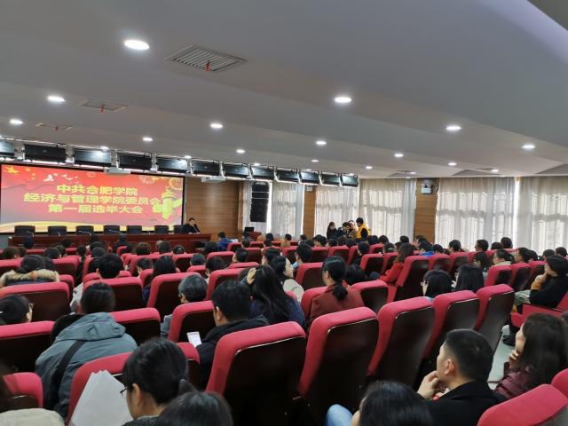 2019年12月10日,中共合肥學院經濟與管理學院委員會第一屆選舉大會于我校一區博學樓C座學術報告廳圓滿結束。大會由經濟與管理學院黨委副書記張永軍主持,經濟與管理學院黨委書記楊學春及院內全體師生黨員前來參會,經濟與管理學院院長陳江華列席會議。