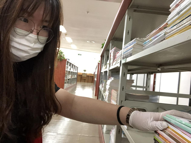 我院隊員蔡劉慧早早地來到了圖書館四樓志愿者簽到處,聽從工作人員的安排并領取志愿工作任務。她的志愿工作地點在期刊部與古籍部,主要工作內容是清理下架逾期較久的雜志、保持雜志報刊整齊擺放、上架最新日期的報刊雜志、整理并排序古籍雜志合訂本、為下架逾期雜志蓋章,志愿時間為一周。看似簡單的工作內容下,實則需要我院隊員付出許多精力去完成工作任務,比如需要忍受因長時間站立而導致的腿腳酸痛、因整理書架的需要而不斷地重復蹲下和起立動作。即便如此,隊員蔡劉慧毫不懈怠,能夠保持著高昂的熱情與耐心較好地完成任務,她的志愿工作得到了工作人員們的認可。