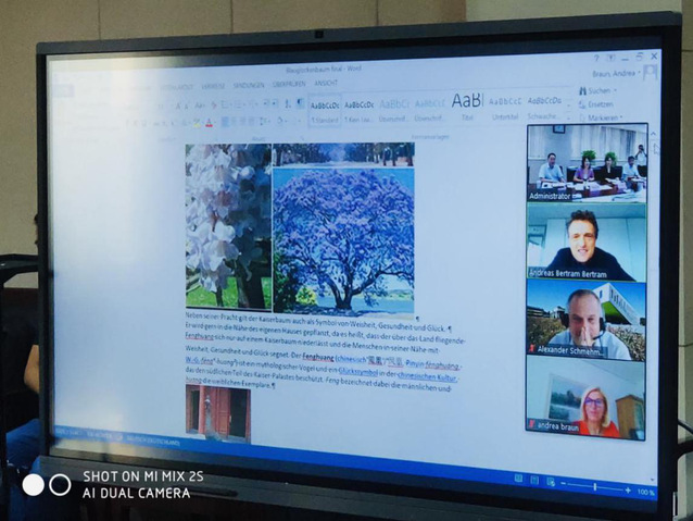 最后,貝爾特拉姆校長(zhǎng)介紹了他們學(xué)校種下的健康樹(shù),祝愿大家在疫情期間身體健康,并期待與吳校長(zhǎng)在合肥學(xué)院或奧斯納布呂克應(yīng)用科學(xué)大學(xué)一邊散步一邊交談,吳校長(zhǎng)非常愉快地接受了邀請(qǐng),并表示非常期待與貝爾特拉姆校長(zhǎng)的會(huì)面。