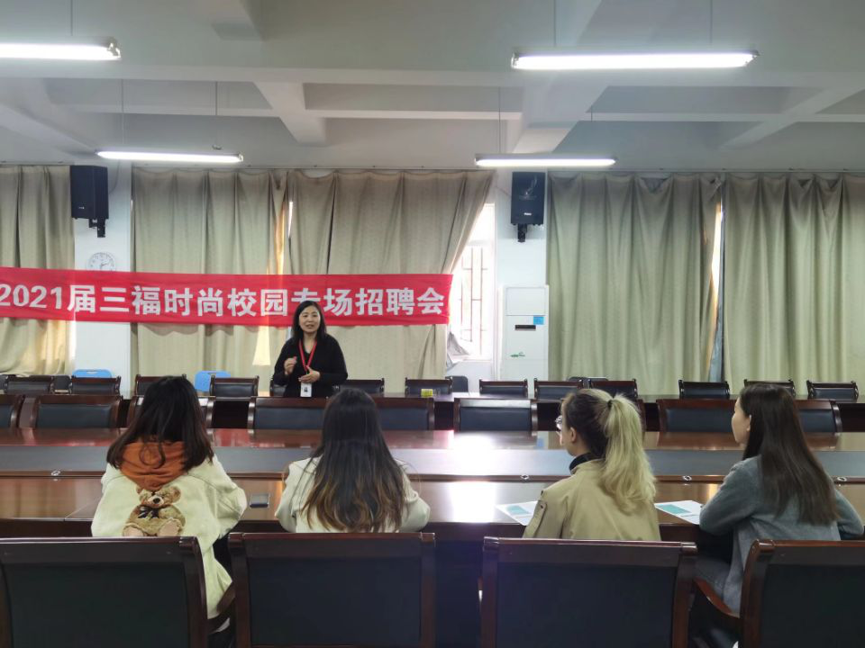 2020年10月22日,三福時(shí)尚2021屆校園演講會召開。三福時(shí)尚招聘主管趙蘭擔(dān)任主講人,他們建議在校大學(xué)生盡早了解自己的專業(yè)知識和就業(yè)方向。在座學(xué)子積極投遞簡歷,參與面試環(huán)節(jié),