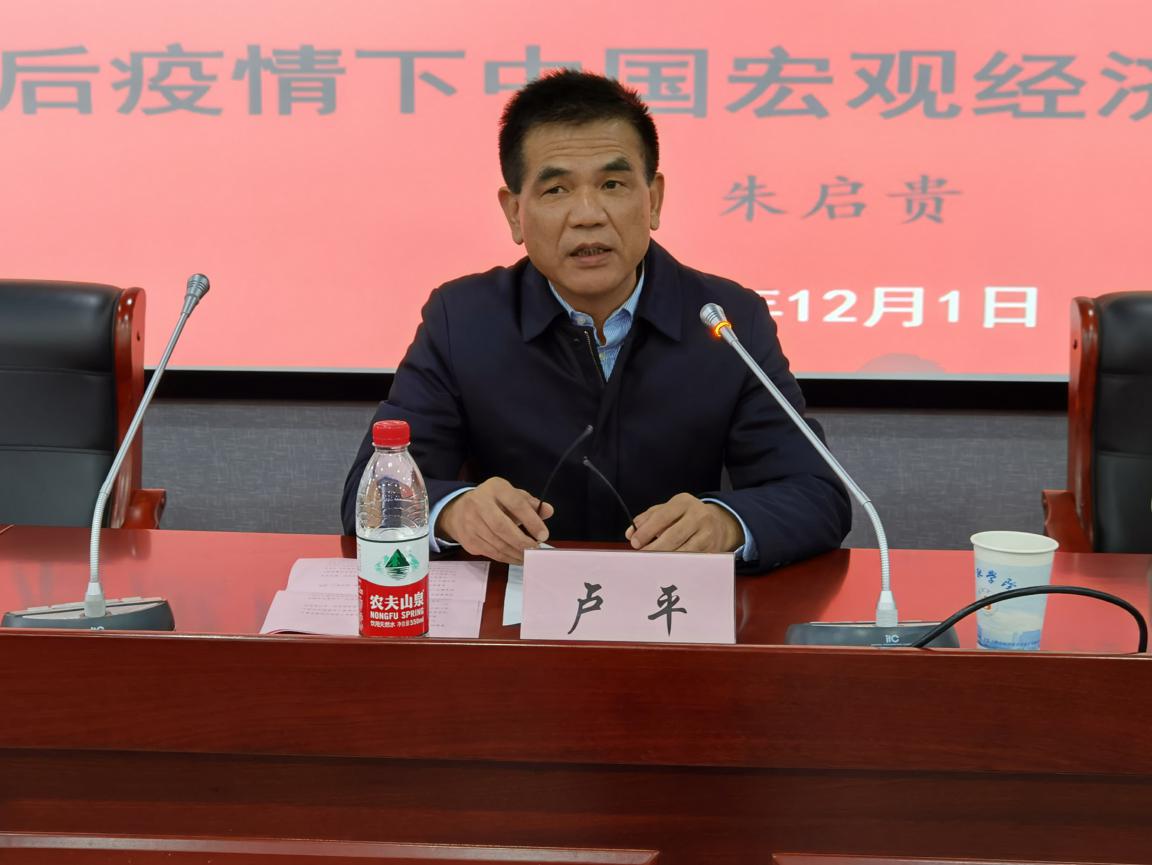 12月1日下午,經管學院40周年校慶報告系列之十:“后疫情下中國宏觀經濟形勢分析”的學術報告在一期6號樓學術報告廳舉行。本次講座由上海交通大學高級金融學院書記朱啟貴教授擔任主講人,副校長盧平主持會議。科技處處長汪潘義、經管學院院長陳江華、經管學院及旅游會展學院部分感興趣師生參加了講座。