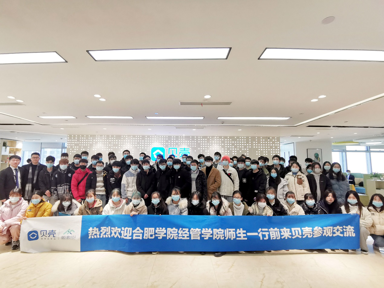 貝殼找房安徽分公司相關負責人,詳細介紹了貝殼找房發展歷程、公司業務模塊、二手房交易流程和合肥市二手房市場總體情況。接著,我院師生與貝殼找房安徽分公司相關負責人進行交流座談,就人才培養方案、學生就業實習、行業發展等進行交流。最后,我院師生一行參觀了貝殼旗下鏈家凱旋門店和恒大水晶廣場店,門店經理向大家詳細講解了二手房交易實操和門店經營情況。