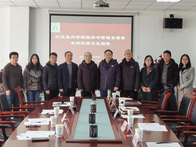 2021年3月12日上午,亳州學院經管學院與合肥學院經管學院交流會于我校一區博學樓B座二樓會議室順利舉行,亳州學院經濟與管理系主任劉崢、實訓中心主任姜風雷、經濟與金融教研室主任袁凱、辦公室主任韓宸辰,合肥學院經濟與管理學院院長陳江華、副院長宋玉軍、投資金融系副主任張崢嶸、投資教研室副主任代玉簪以及投資金融系的部分骨干老師參與此次交流會。