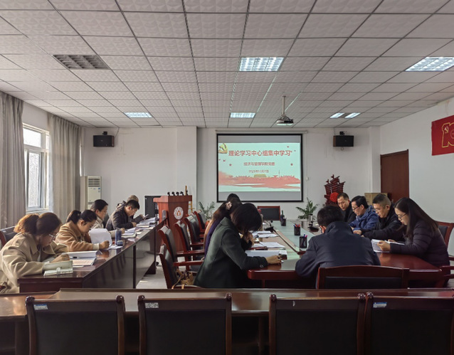 2021年12月7日,經濟與管理學院黨委理論學習中心組集中學習會議于我校一期博學樓B座二樓會議室進行。會議由經濟與管理學院黨委書記楊學春主持,黨委副書記、副院長宋玉軍,副院長吳悅,黨委副書記張永軍、黨委委員以及我院各黨支部書記參加了學習。