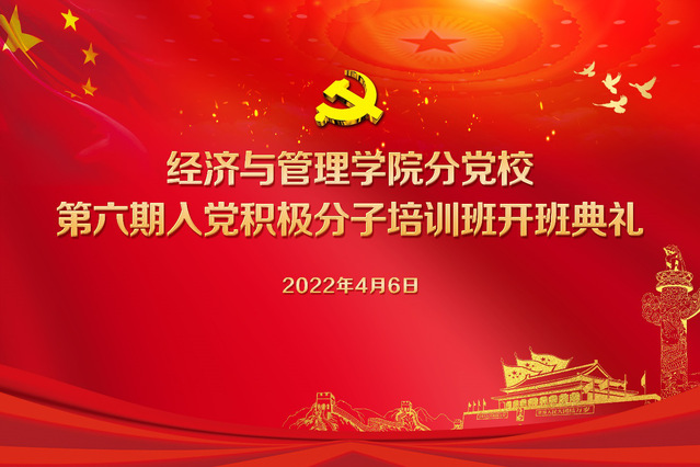 為切實做好入黨積極分子的培養教育工作,不斷提升學院發展黨員的質量,2022年4月6日中午,經濟與管理學院分黨校第六期入黨積極分子培訓班開班典禮在線上舉辦。經濟與管理學院黨委書記楊學春、黨委副書記張永軍、各學生黨支部書記、經濟與管理學院第六期入黨積極分子培訓班全體學員參加。開班典禮由培訓班班主任劉丹青老師主持。