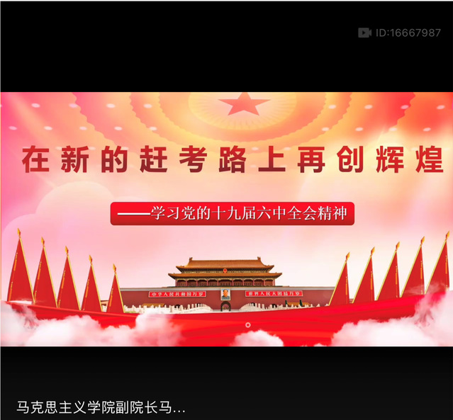 馬保衛(wèi)老師以“在新的趕考路上再創(chuàng)輝煌”開篇,從“黨的十九屆六中全會的召開背景”“《中共中央關于黨的百年奮斗重大成就和歷史經(jīng)驗的決議》的主要內容”“學習六中全會精神,這些表述要精讀”“黨的十九屆六中全會的重大意義”四個方面對黨的十九屆六中全會進行了深入地闡述,強調“黨的十九屆六中全會是開啟全面建設社會主義現(xiàn)代化國家新征程、在新時代堅持和發(fā)展中國特色社會主義的客觀需要”。