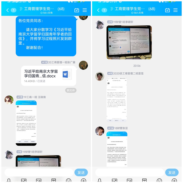 經濟與管理學院黨委要求師生黨員深入學習領會《習近平給南京大學留學歸國青年學者的回信》中的重要論述內涵。習近平總書記指出,青年學者應該大力弘揚留學報國的光榮傳統,以報效國家、服務人民為自覺追求,在堅持立德樹人、推動科技自立自強上再創佳績,在堅定文化自信、講好中國故事上爭做表率。各教職工黨支部、學生黨支部和研究生黨支部均深入學習了《習近平給南京大學留學歸國青年學者的回信》內容和精神,結合工作實際,紛紛就學習內容做線上交流發言,表示青年生逢偉大時代,當時刻謹記習近平總書記殷殷囑托、切切寄語,起而行之、勇挑重擔,在現代化建設新征程上唱響“青春贊歌”。