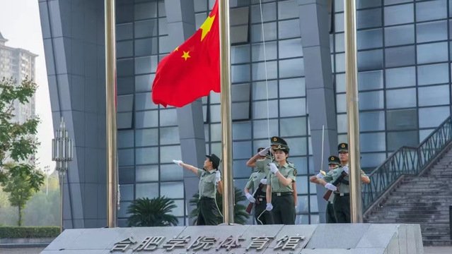 升旗儀式上,伴隨著莊嚴的《義勇軍進行曲》,五星紅旗冉冉升起,經濟與管理學院學生黨員們佩戴黨徽,面向國旗行注目禮,齊聲高唱國歌,以飽滿的熱情和昂揚的姿態向祖國母親表達最崇高的敬意和無限的感激之情。