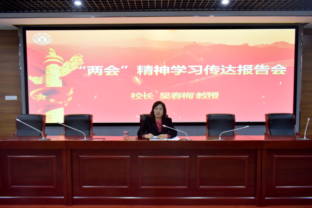 3月21日下午,我校在一期六棟報告廳召開2023年全國兩會精神學習傳達報告會。全國人大代表、合肥學院院長吳春梅作專題報告,經濟與管理學院黨委書記倪澤強主持,經濟與管理學院師生黨員代表到場聆聽。