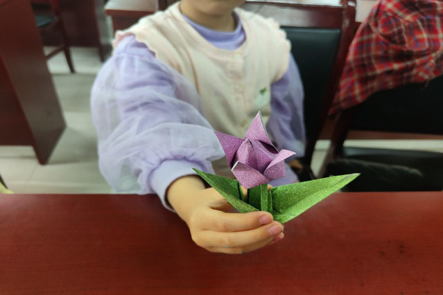 而后,志愿者帶領孩子們開展各類課外活動。由志愿者為孩子們分發彩色折紙,并教孩子們折疊郁金香。在母親節即將到來之際,孩子們為母親送上親手制作的郁金香折紙。課程結束后家長和孩子們對這項活動給予了充分的肯定與支持。