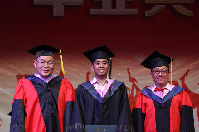 發(fā)言結(jié)束后,學(xué)院黨委書記倪澤強、院長陳江華上臺,為2023屆畢業(yè)生頒發(fā)證書,撥流蘇,并合影留念。