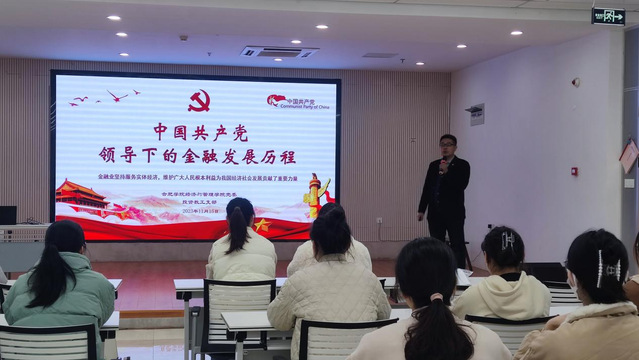 在課堂上,投資教工黨支部書記李殿云說道,中國共產黨歷來重視金融工作,圍繞不同歷史時期開展了系列工作,切實維護了廣大人民根本利益,為我國經濟社會發展貢獻了重要力量。李殿云老師詳細解讀了中國共產黨領導下的金融行業在不同歷史時期發揮的作用,深入闡釋了金融業在推動實體經濟發展和維護廣大人民的利益上發揮的重要作用。