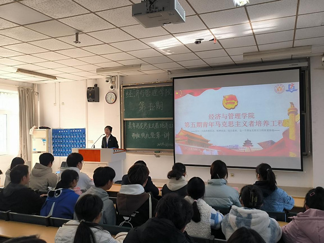 為深入學習貫徹黨的二十大精神,培養新時代青年馬克思主義者,2023年11月24日經濟與管理學院第五期青年馬克思主義者培養工程開班典禮暨第一講于一期校園五棟101室成功舉行。經濟與管理學院黨委書記倪澤強,團委書記姚璇,第五屆團委學生會主席團,學生會成員與23級新生班干參與學習。