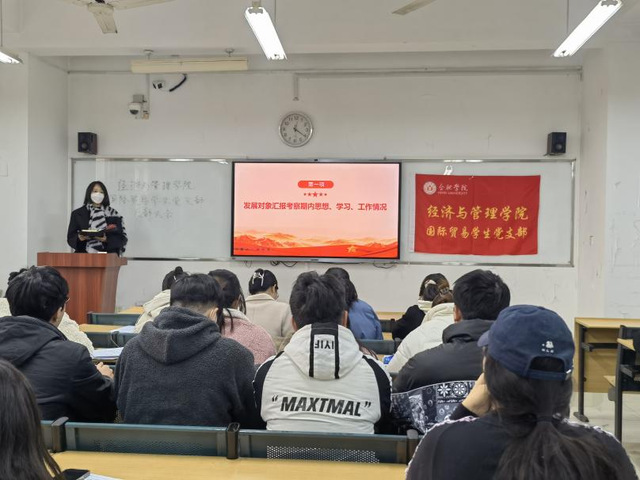 2023年12月6日,經濟與管理學院國際貿易學生黨支部順利召開黨員大會。此次黨員大會重點討論接收毛慧玲等6名同志為中共預備黨員事宜,有利于加強支部黨員隊伍建設,提高黨員的政治素質和組織紀律性,增強學生黨員的組織認同感和使命感。
