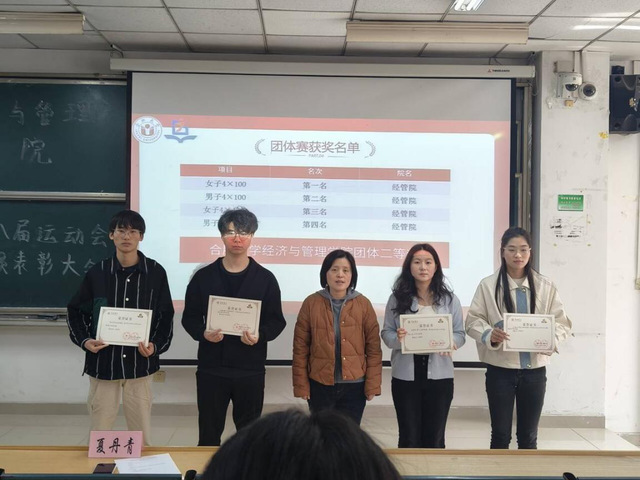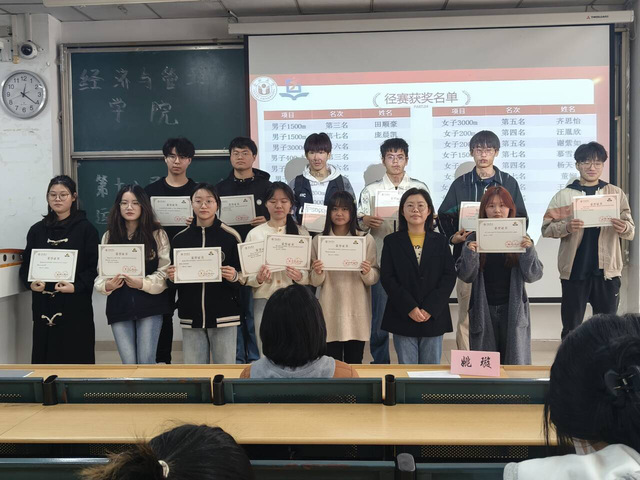 辛勤的汗水換來豐碩的成果,一分耕耘,定有一分收獲。經(jīng)濟(jì)與管理學(xué)院決定3月15日中午于4棟107室開展運動會表彰大會,鼓勵表揚(yáng)學(xué)生們能夠積極參與我校的各類體育競賽。經(jīng)濟(jì)與管理學(xué)院黨委副書記夏丹青老師,團(tuán)委書記姚璇老師與獲獎運動員參與會議。