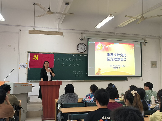 2024年5月10日中午,經(jīng)濟與管理學(xué)院分黨校第十期入黨積極分子培訓(xùn)班第三課在4棟103、107教室同時進行。經(jīng)濟與管理學(xué)院黨委副書記、副院長吳悅擔(dān)任主講人。經(jīng)濟與管理學(xué)院第十期入黨積極分子培訓(xùn)班全體學(xué)員參加學(xué)習(xí)。