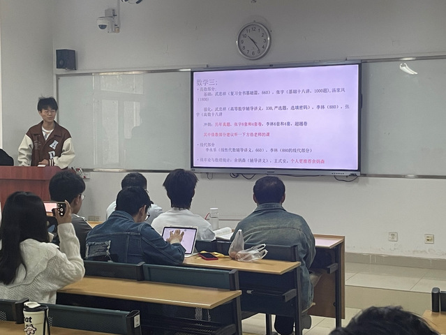 會上,于老師簡要介紹了經管學院20級整體考研及就業情況,深入分析了當下的考研和就業形勢,鼓勵同學們積極進取、努力拼搏,虛心接受學長的建議。隨后,張忠兵、唐肖鋒分別為同學們講解了在備考期間應該注意的問題,包括考研各科的復習方法、備考計劃、院校選擇、作息時間安排等,同時建議考研、考公的同學可以在下學期積極參加校園招聘會,在備考的同時可先與意向單位簽約保底,緩解心理壓力。在現場提問環節,張忠兵、唐肖鋒悉心解答了同學們提出的各種問題,并給出了有針對性的參考建議,進一步堅定了在場同學們的備考信心。