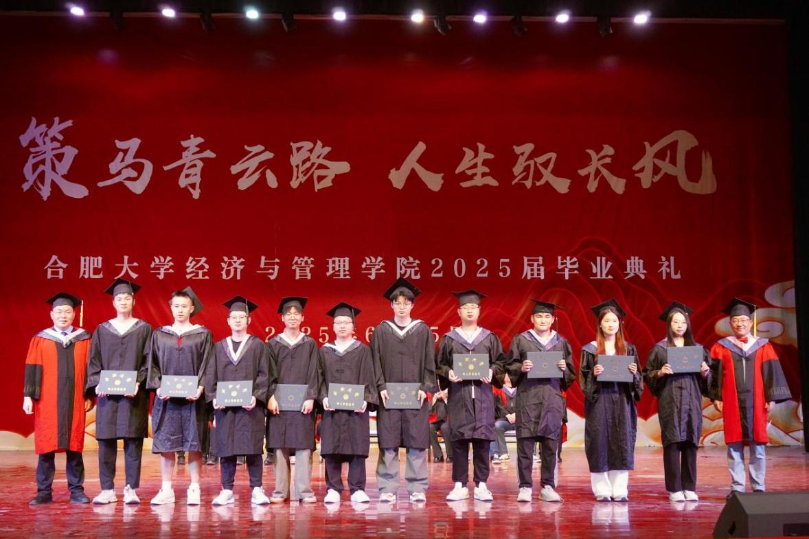 6月25日,經(jīng)濟與管理學院2025屆畢業(yè)生畢業(yè)典禮暨學位授予儀式在致用禮堂舉行。經(jīng)濟與管理學院黨委書記倪澤強、院長陳江華、黨委副書記夏丹青、副院長吳悅、副院長于娜以及學位評定委員會的老師們共同為2025屆畢業(yè)生送上最真摯的祝福。