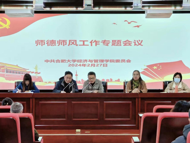 為進一步加強學院師德師風建設,提高教師職業道德素養,樹立良好的師德風范和師德形象,2024年2月27日,經濟與管理學院在六棟報告廳召開師德師風建設專題會議。本次會議由經濟與管理學院院長陳江華主持,全體教職工參加會議。 會上,學院黨委書記倪澤強首先對學院師德師風建設工作進行了總結和回顧,肯定了取得的成績,同時也指出了存在的問題和不足。接著,會議圍繞師德師風建設的重要性、當前面臨的形勢和任務以及如何加強師德師風建設等方面進行了具體的要求和詳細的安排。 與會人員一致認為,師德師風是教師職業的靈魂,直接關系到學生的健康成長和學校的長遠發展。教師應不斷提高自身的道德修養和教育教學水平,以身作則,為人師表,做學生健康成長的指導者和引路人。 通過本次專項會議,我院將進一步推動開展師德師風建設工作,努力營造良好的教育教學環境,為培養德智體美勞全面發展的社會主義建設者和接班人做出更大的貢獻。 (經濟與管理學院 撰稿人:邱彤 審稿人:王晨森) |