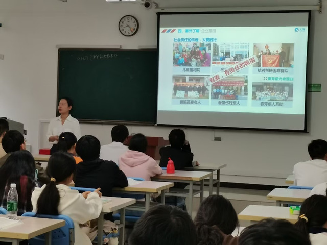 下午4點,“元琛班”宣講與《大學生職業生涯規劃》課程相結合,采用HR進課堂的方式啟發新生學業規劃和職業規劃意識。首先,元琛科技人才發展部經理夏徽云詳細介紹了公司的發展歷程、經營范圍和人才需求情況,展示了公司在SCR催化劑、環保除塵布袋、AI智慧能碳等方面的前沿技術,讓新生們對專業的應用前景有了更清晰的認識。接著,夏經理介紹了在我院無機非(元?。╇p元制班的設立初衷以及發展愿景。該班級的建立旨在為無機非金屬材料工程專業的學生提供一個理論與實踐相結合的學習平臺,通過與企業的緊密合作,優化課程設置,增加企業導師授課、實習實訓、科研項目參與等環節,培養出具有創新精神和實踐能力的高素質人才,極大地激發了同學們的學習熱情和探索欲望。最后進入答疑互動環節,元琛科技人力資源總監張利利和夏經理耐心解答了同學們關于雙元制班級的培養方案以及企業發展前景和薪資待遇等問題。