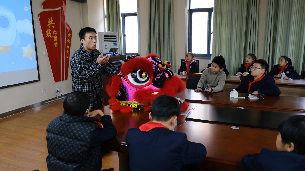 緊接著校龍獅工作室的孫晨和徐阿暢兩位同學為在場師生呈現了一場震撼人心的非遺文化展演。通過精彩的舞獅表演和富有戲劇性的變臉技藝,孩子們身臨其境地感受到了中國傳統民俗藝術的獨特魅力。舞龍舞獅,作為中華民族歷史悠久的非物質文化遺產,其背后蘊含的不僅是技藝的傳承,更是民族精神的象征,精彩表演讓孩子們領略了傳統藝術的精髓,深化了他們對中國非遺文化深厚底蘊的認知與尊重,為活動奠定了濃厚的文化氛圍。