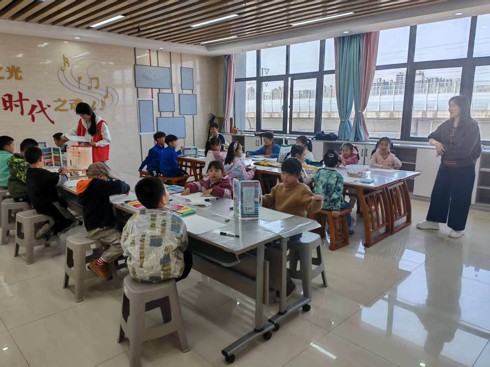 3月22日下午兩點半,在朝霞居委會內,來自合肥大學能源材料與化工學院的2名同學與朝霞居委會的美術老師一起教小朋友學習畫畫,激發了小朋友們對美術的熱情。