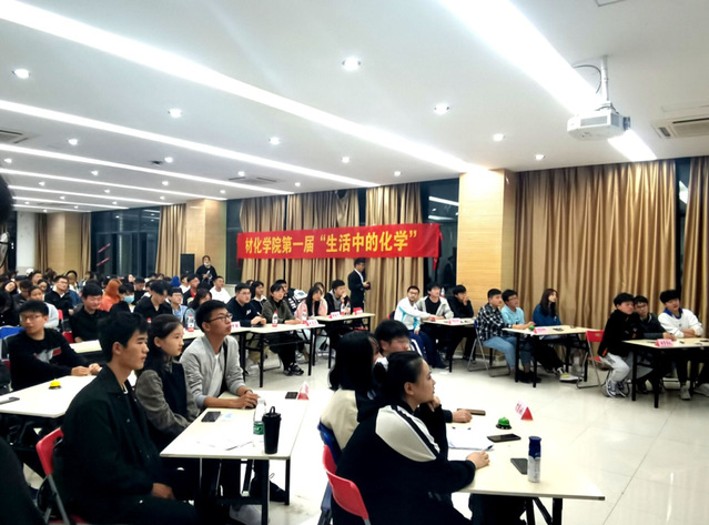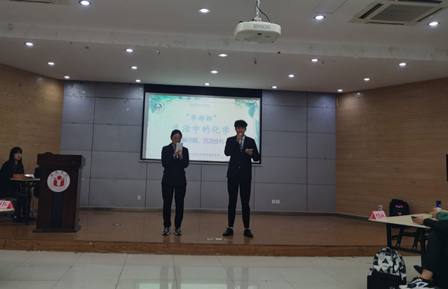 11月15日晚學(xué)生活動(dòng)中心二座無(wú)虛席,“華祁杯”生活中的化學(xué)決賽順利舉辦,材化學(xué)院團(tuán)委書(shū)記姚蓓蓓、安徽華辰檢測(cè)技術(shù)研究院有限公司代表陳鋒、材化學(xué)院主席團(tuán)成員等到場(chǎng)參加了本次活動(dòng)。