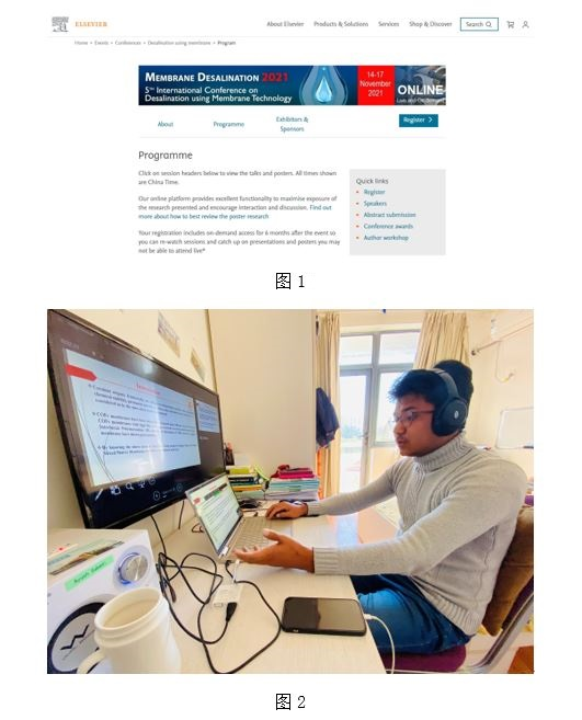 能源材料與化工學院的研究生Narendra Basel代表合肥學院參加本次會議,并通過大會組委會的選拔,以學生身份獲得Membrane Desalination 2021 (MEMDES2021)論壇的15分鐘口頭發言時間。該生以“Ultrafast sieving of dye with in-situ generated covalent organic frameworks layer on PAN mixed matrix membrane (MMMs)”為題,向參會代表重點介紹了納濾脫鹽的試驗結果和研究進展,并現場回答澳大利亞和泰國學者關心的學術問題。受到新冠肺炎疫情的影響,本次國際會議(圖1和圖2)全部由線下轉為線上舉行,國際期刊“膜科學”共同主編Wang Rong女士和期刊“脫鹽”共同主編He Tao先生參與并線上主持本次會議。
