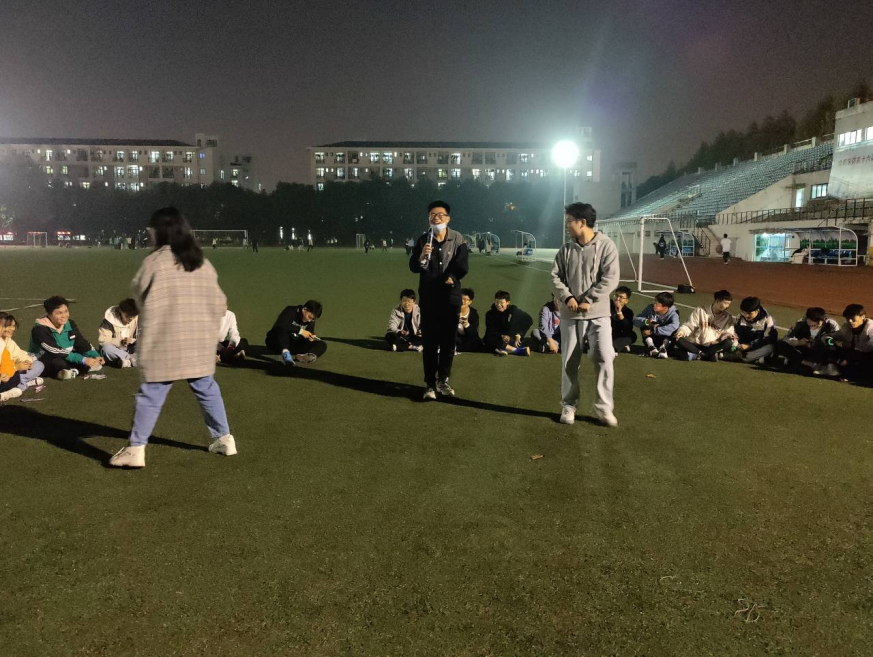 活動正式開始前,同學們在相關人員主持下陸續簽到并領取了便利紙和熒光手鐲。在同學們戴上熒光手鐲并進行簡單的熱身后,開始了自由跑五分鐘。同學們盡情揮灑著汗水,酣暢淋漓,給操場上留下了一道了亮麗的風景線。時間一分一秒地流逝,同學們集合在燈光下,片刻休息后,開始了“夜說心語”環節。主持人戴源讓同學們寫下令自己難受或是想要吐槽的事情,抒發自己內心壓抑的情緒,告別emo。隨后,由工作人員收取便利貼,用于開展后面環節。同時,工作人員禮貌有序地分發著準備的小零食。