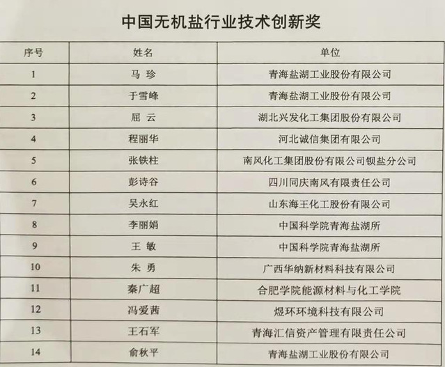 無機鹽協會表彰決定指出,為促進我國無機鹽工業規范、健康、高質量發展,充分調動廣大無機鹽從業者的積極性和創造性,宣傳和推廣新時代無機鹽各領域蹄疾步穩推進高質量發展的先進典型和寶貴經驗,表彰和鼓勵在優化結構、自主創新、綠色發展等工作中作出突出貢獻的個人,無機鹽協會決定,授予秦廣超等56人第二屆中國無機鹽工業協會先進個人稱號。