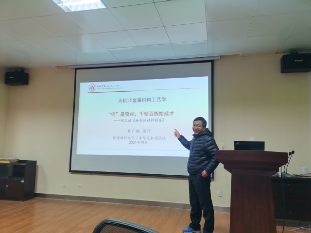 秦廣超教授圍繞“'鈣’是奇才,千錘百煉始成才”為主題展開,講授《無機非金屬材料工藝學》課程思政設計,將教學內容與國家戰略需求和粉體材料制備技術以及綠色安全生產融為一體,實現激發學生創新意識和專業興趣,提升學生專業素養、創新能力和使命感的育人目標。在思考總結中,秦教授將專業知識學習與品質素養培養相結合,提出“德高于才、敬天愛人”的思想,鼓勵學生通過自己的“千錘百煉”努力,成為“蓋世奇才”。
