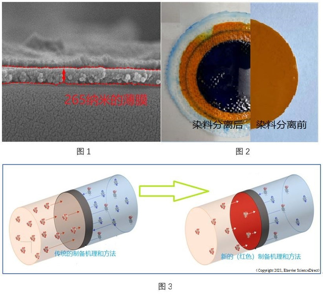 近日,能源材料與化工學院青年教師劉嶠與本院研究生Narendra Basel,共同合作研發出一種基于石墨烯/氧化鈦/聚丙烯混合基膜的原位有機骨架共價層薄膜(圖1),這種薄膜對亞甲基藍等工、農業生產和日常生活中常見的染料與染料中間體有較好的分離效果(圖2),其制備機理可以簡單地用圖3來示意,相關成果以“Interfacial polymerization of a COF layer on TiO2@GO/Polyacrylonitrile mixed-matrix membranes for high-performance dye separation”為題,于2022年1月18日在線發表在國際期刊“膜科學”上 (Journal of Membrane Science)。Journal of Membrane Science是膜科學領域的一個老牌期刊,該雜志1973年創刊,目前由總部設在荷蘭的愛思唯爾(Elsevier)公司(集團)出版發行,近年來由于投稿量快速增長,已從雙月刊過渡到半月刊,每年刊登約600-700篇學術型論文,是該領域學者交流的橋梁和紐帶之一。