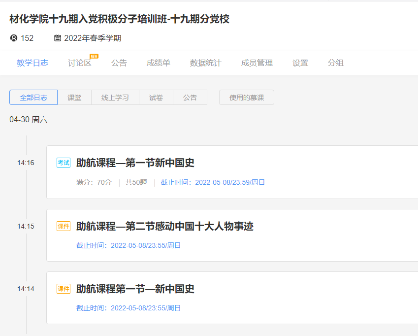 為貫徹校黨委針對疫情期間的決策部署,穩步推進黨員后備隊伍培養教育工作,4月2日起,合肥學院能源材料與化工學院分黨校第十九期入黨積極分子培訓班采取線上教學模式,通過雨課堂平臺進行培訓。在正式開課之前,分黨校班主任陳靜怡老師針對黨課學習過程中的相關事項以及最終考核方式,做了詳細說明。