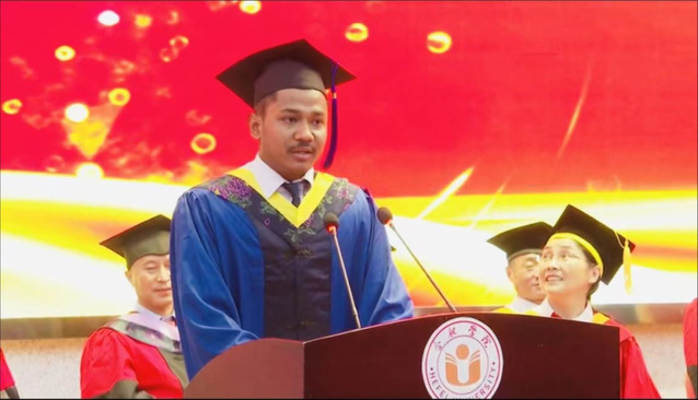 Narendra Basel是能源材料與化工學(xué)院“材料科學(xué)與工程”專業(yè)的碩士留學(xué)生,2019年經(jīng)過合肥學(xué)院國際交流合作處的選拔和組織,從尼泊爾來到合肥學(xué)院求學(xué),主要從事新型膜材料與膜過程相關(guān)的課題研究。他熱愛科研,特別是化學(xué)實驗;即使是在疫情最嚴重的隔離期,他仍然堅持每天閱讀大量的英文文獻并著手設(shè)計實驗,撰寫詳細的試驗步驟與導(dǎo)師和同學(xué)們交流討論。經(jīng)過三年的學(xué)習(xí),他于2022年6月順利畢業(yè),并代表全校留學(xué)生在畢業(yè)典禮上發(fā)言致辭。