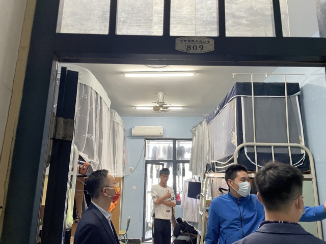 在走訪過程中,學院領導仔細了解學生封校管理期間的身心狀況,希望學生們要理解支持、積極配合、落實好學校疫情防控相關舉措,遵守疫情防控規定和校規校紀,尤其是保持良好的生活習慣、加強鍛煉提高免疫力、保持安全社交距離、戴口罩以及宿舍勤通風、勤打掃,以實際行動堅決守護校園平安。