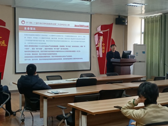 會上,魏安樂同志領學了習近平總書記在二十屆中央紀委二次全會上的重要講話精神和會議公報內容。一致認為,習近平總書記的重要講話從新時代新征程黨和國家事業發展全局的高度,深刻分析了大黨獨有難題的形成原因、主要表現和破解之道,深刻闡述了健全全面從嚴治黨體系的目標任務、實踐要求,并對堅定不移深入推進全面從嚴治黨作出了戰略部署,具有很強的政治性、指導性、針對性,為加強全面從嚴治黨提供了根本遵循。