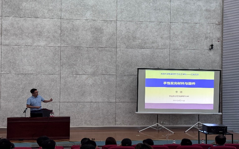 為促進研究生對手性材料前沿領域的認識,提升科學素養,9月24日上午10點,中國科學院化學研究所員李猛博士應耿中興博士邀請為我院師生作了以“手性發光材料與器件”為主題的學術報告。本次會議由院長胡坤宏教授主持,副院長鄧崇海教授及學院師生參加了學術會議。