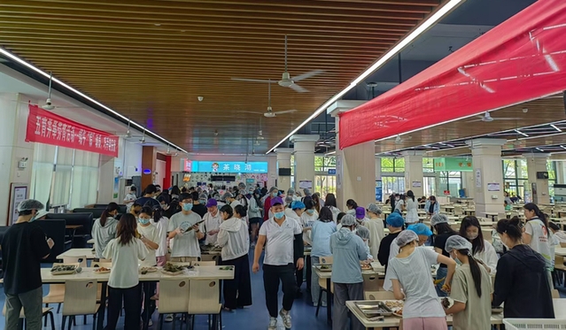 在學生處與后勤集團的聯合組織下,“端午粽動員 巧手制安康”包粽子體驗活動在第二學生食堂舉行。食堂精心準備了粽葉、糯米、肉餡和蜜棗等材料,在師傅的悉心指導下,200多名學生踴躍參與,共包制了2000余個粽子。