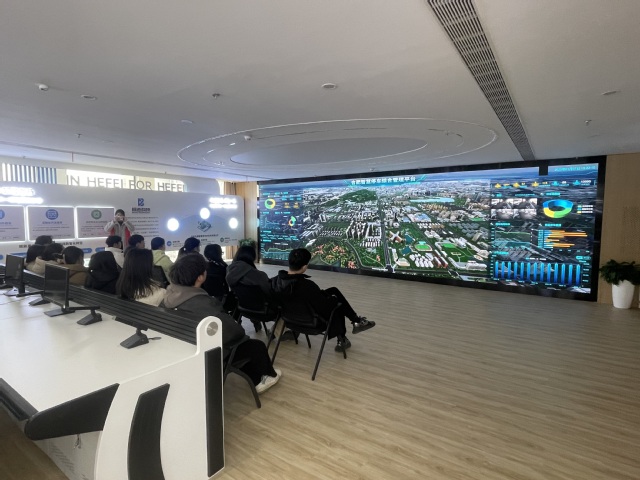 隨后,學生們參觀了信息化大屏展示區,通過直觀的數據顯示了合肥市在交通管理方面的創新成果。現場的高科技展示吸引了同學們的極大興趣,大家紛紛駐足觀看并積極詢問相關問題,深入了解動態交通信息化建設的前沿動態。