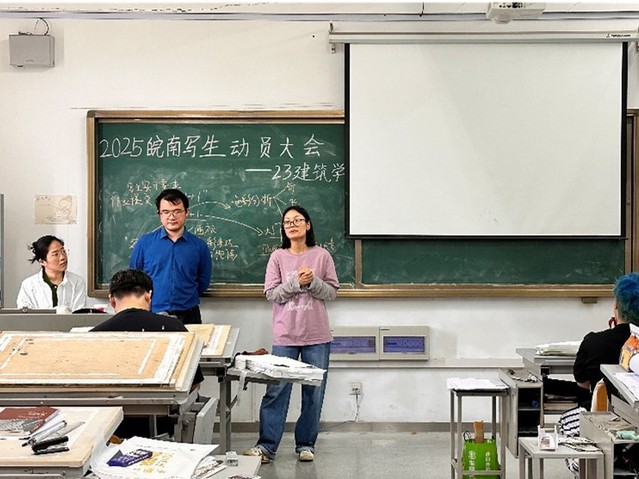 2025年5月9日,城市建設與交通學院建筑系在41棟604教室召開了23級建筑學專業皖南色彩實習動員會。會議由建筑系司大雄老師主持,城建學院黨委書記張永軍、黨委副書記高喬楠以及色彩實習指導老師一同參加,并與同學們進行了面對面的交流。
